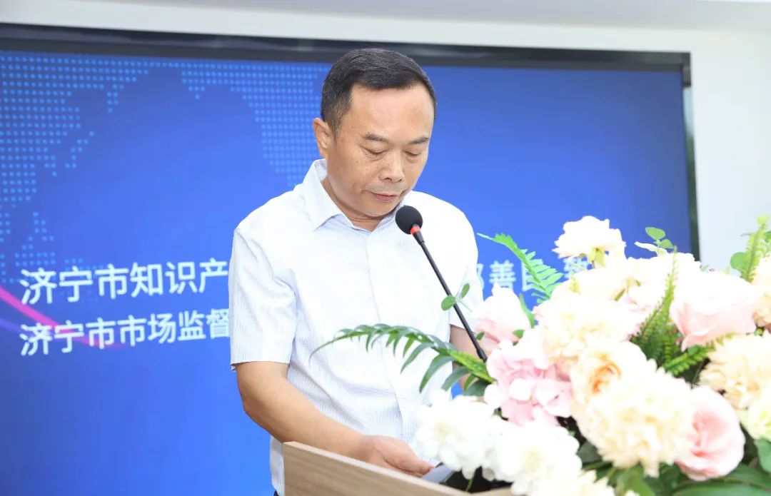 濟寧廣播電視臺黨支部書記、濟寧市知識產權協會執行秘書長周長青主持揭牌儀式。